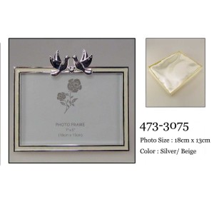 Oryginalnie wyglądająca ramka na zdjęcie wykonana z posrebrzanego stopu cynku oraz żywicy epoksydowej ze zdobieniami cyrkoniami oraz rewersem ramki oklejonym materiałem tekstylnym(zbliżonym do weluru).
