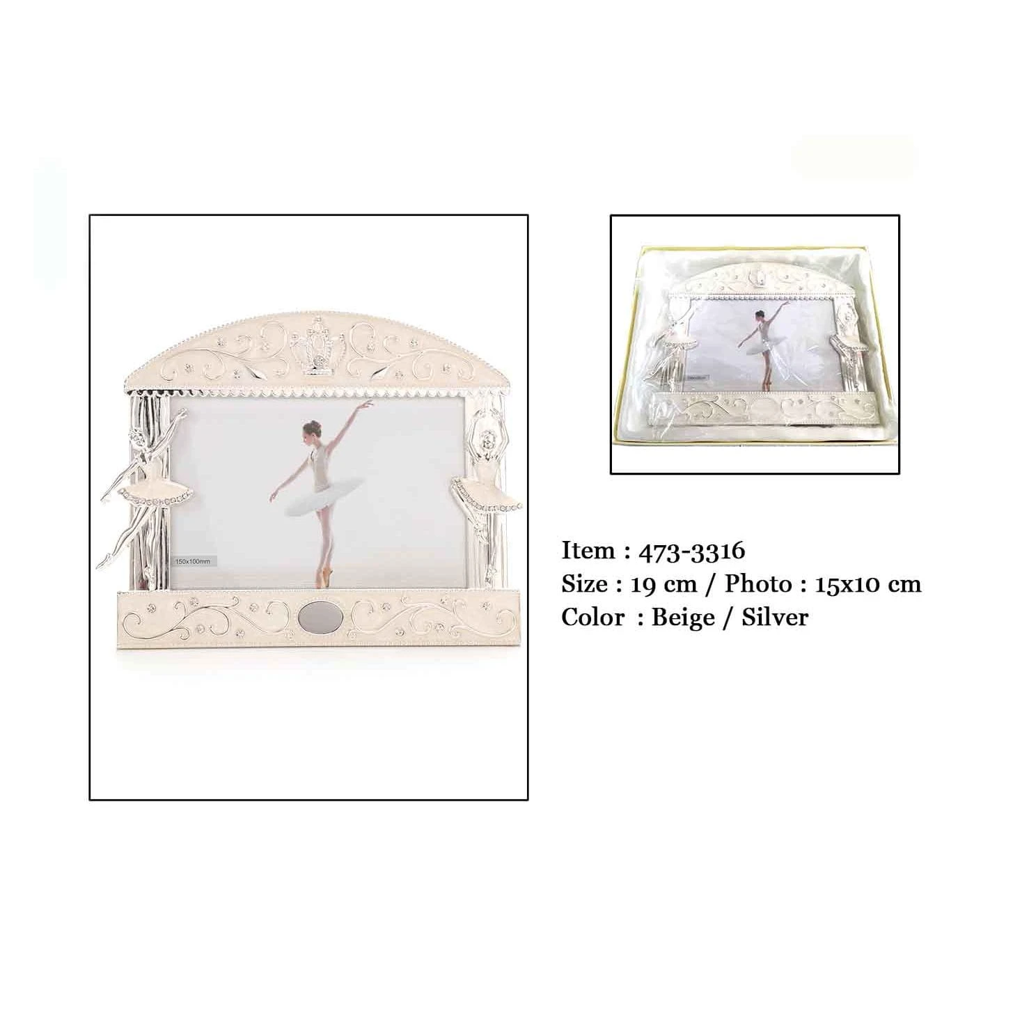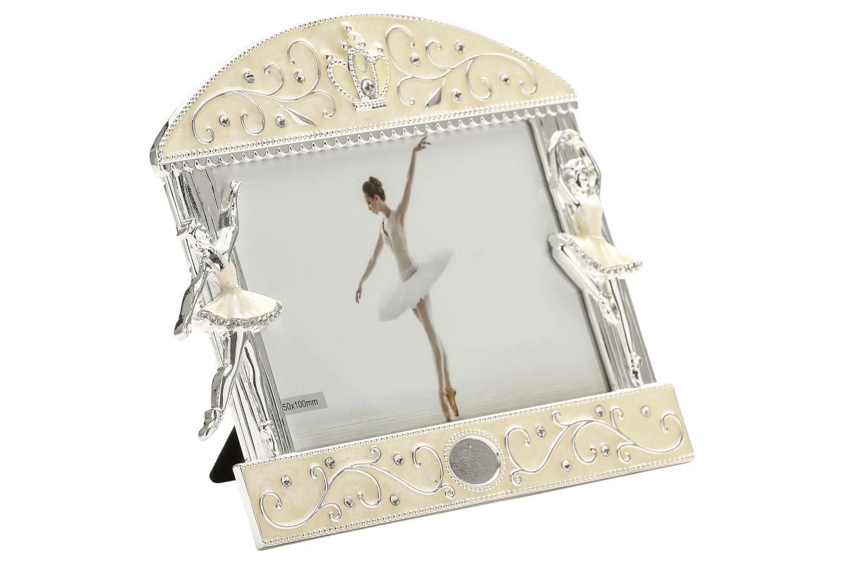Oryginalnie wyglądająca ramka na zdjęcie BALETNICE wykonana z posrebrzanego stopu cynku oraz żywicy epoksydowej ze zdobieniami cyrkoniami oraz rewersem ramki oklejonym materiałem tekstylnym(zbliżonym do weluru).