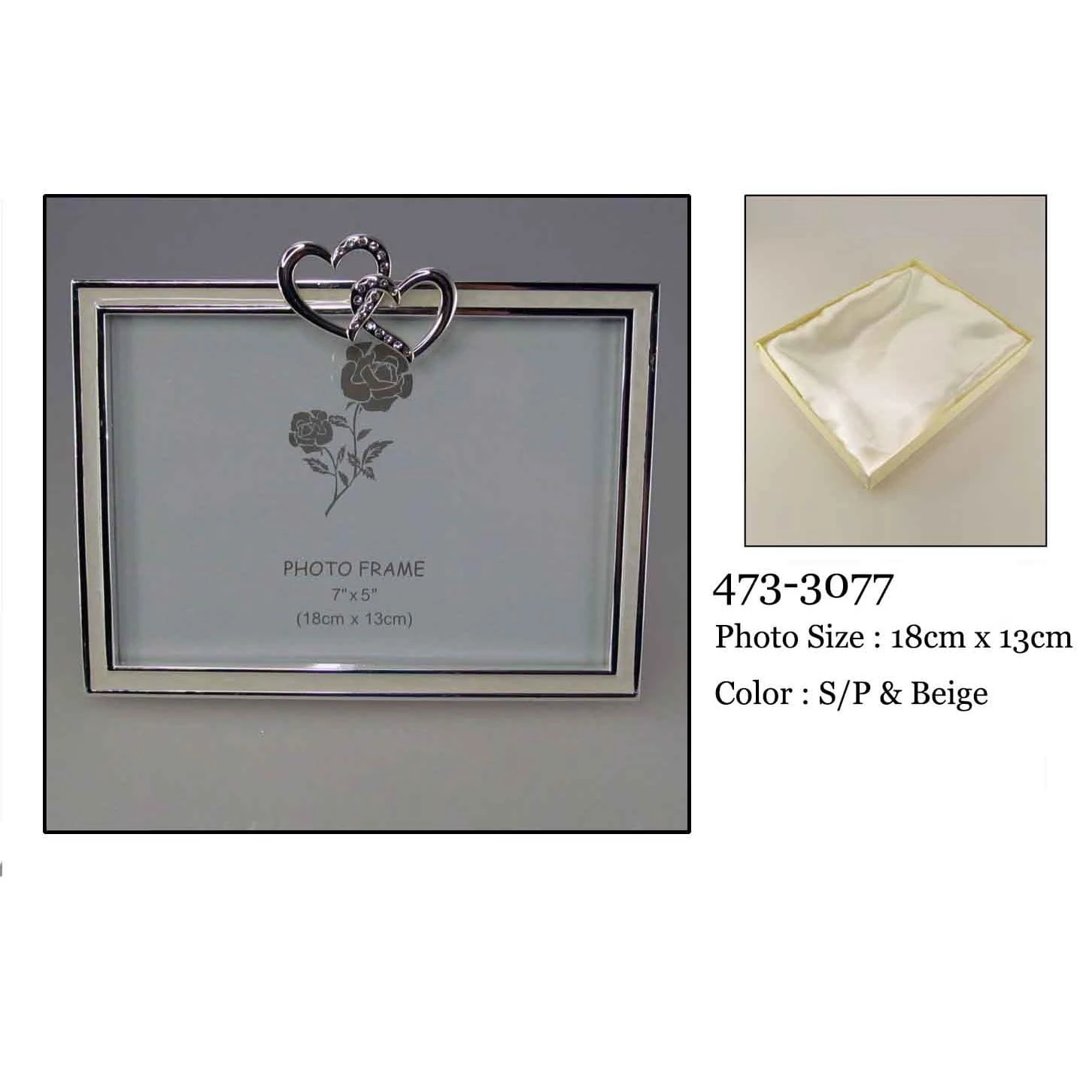 Oryginalnie wyglądająca ramka na zdjęcie SERCA DWA wykonana z posrebrzanego stopu cynku oraz żywicy epoksydowej ze zdobieniami cyrkoniami oraz rewersem ramki oklejonym materiałem tekstylnym(zbliżonym do weluru).