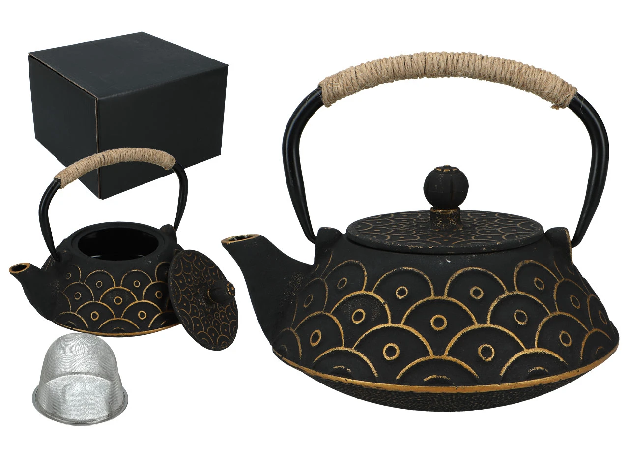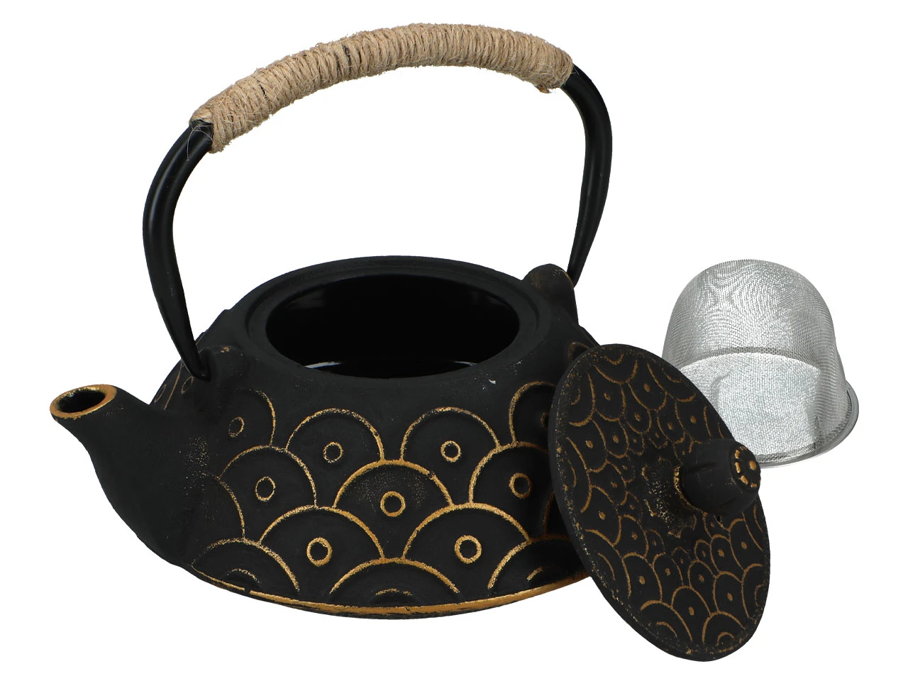 W przeciwieństwie do porcelany, żeliwo znacznie dłużej utrzymuje temperaturę naparu, dzięki czemu herbata nie stygnie gwałtownie i zachowuje pełnię aromatu przez dłuższy czas. Wewnętrzne sitko pozwala wygodnie zaparzać herbatę liściastą, zioła lub mieszanki owocowe, oddzielając napar od liści bez potrzeby używania dodatkowych akcesoriów.