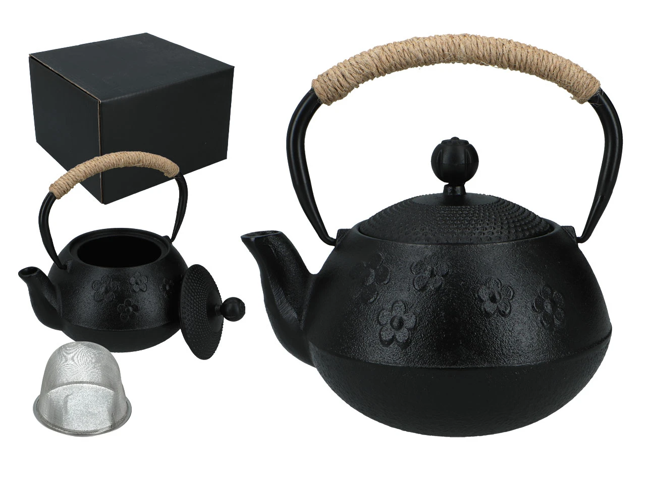 W przeciwieństwie do porcelany, żeliwo znacznie dłużej utrzymuje temperaturę naparu, dzięki czemu herbata nie stygnie gwałtownie i zachowuje pełnię aromatu przez dłuższy czas. Wewnętrzne sitko pozwala wygodnie zaparzać herbatę liściastą, zioła lub mieszanki owocowe, oddzielając napar od liści bez potrzeby używania dodatkowych akcesoriów.