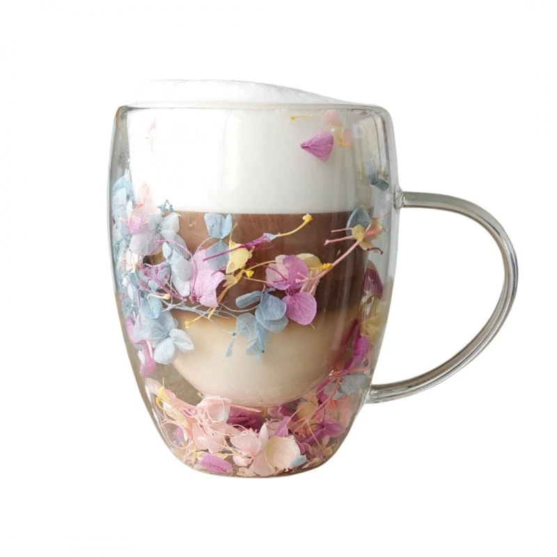 Szklanka termiczna z kwiatami w środku, gipsówka hortensje róż 300 ml 1szt SZK180