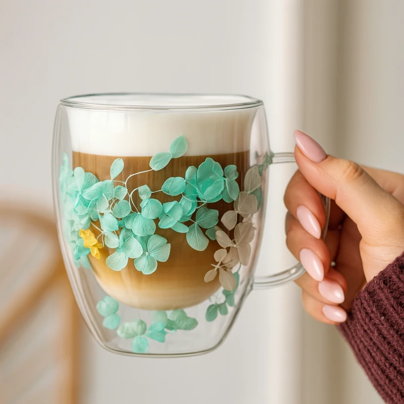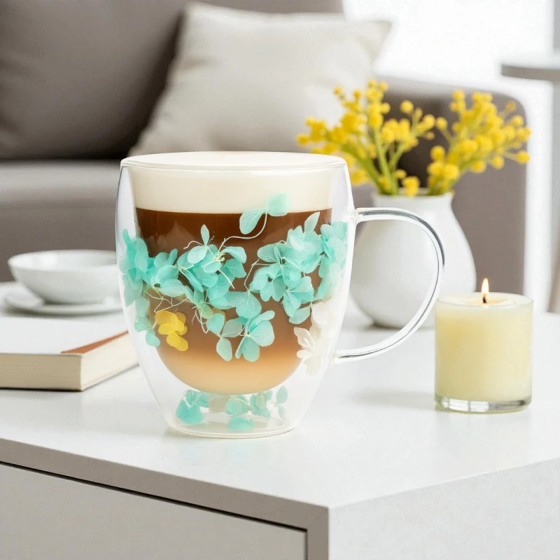 Szklanka termiczna z kwiatami w środku, hortensje zielone 300 ml 1szt SZK179ZIE