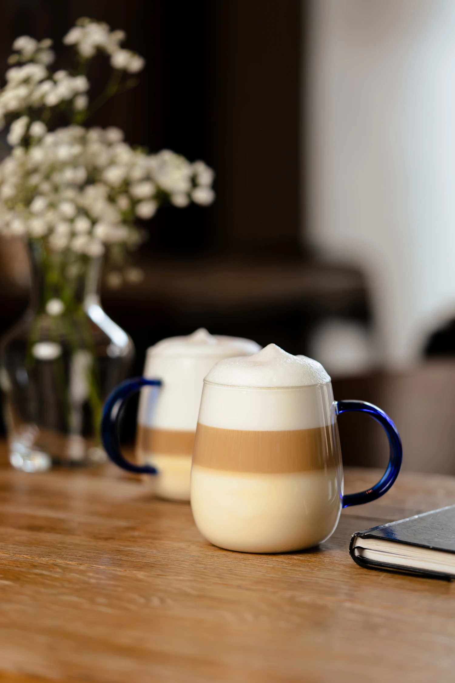 Szklanki Bolla zachwycają swoim kulistym kształtem, który przypomina delikatną bańkę, wprowadzając do wnętrza minimalistyczny i elegancki charakter. Ich gładkie linie i prostota formy sprawiają, że doskonale eksponują barwy serwowanych napojów, dodając wyjątkowego uroku zarówno kawie, jak i herbacie. Wykonane z wytrzymałego szkła borokrzemowego, szklanki są odporne na wysokie temperatury, a możliwość mycia w zmywarce czyni je praktycznym wyborem na co dzień.