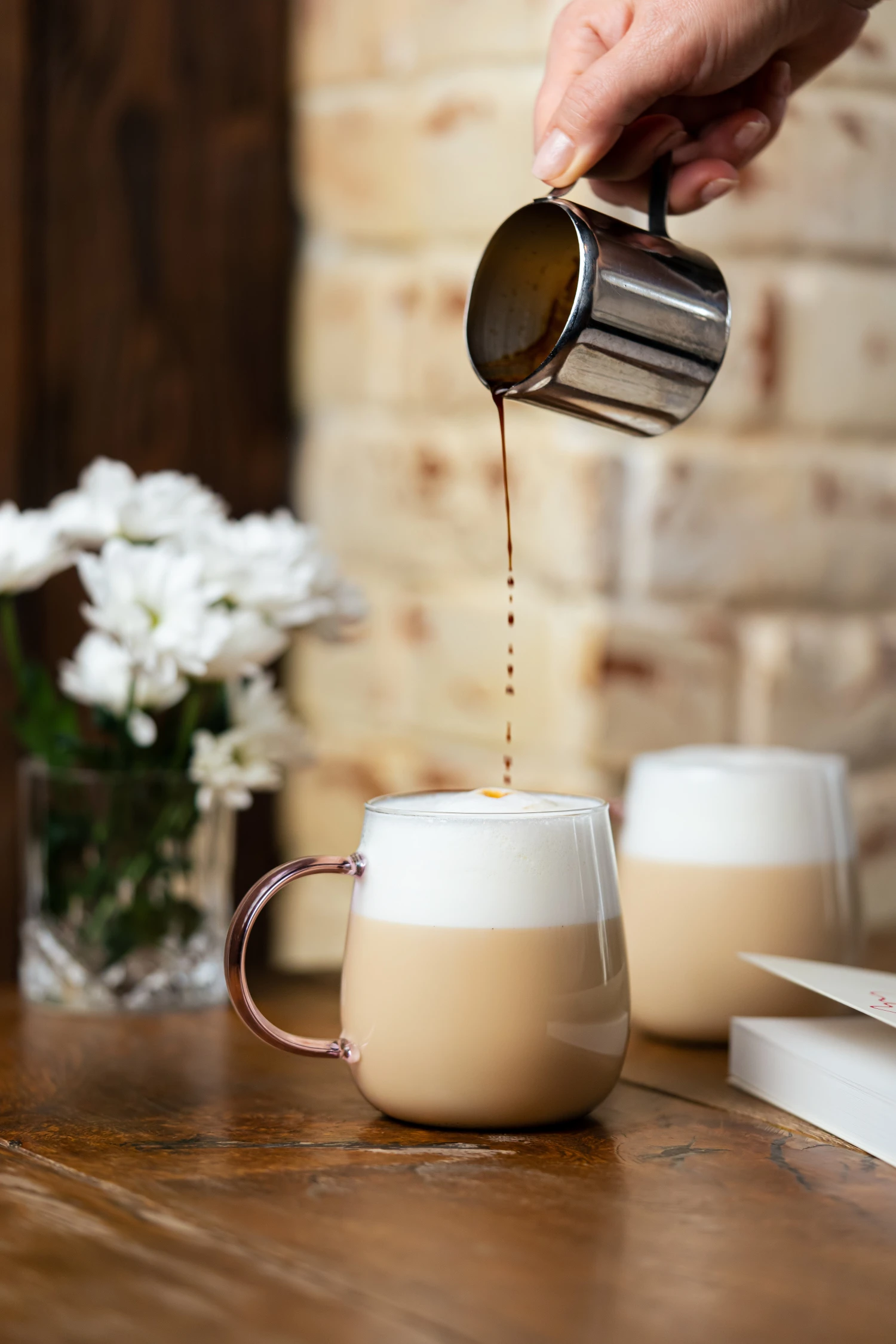 Szklanki Bolla zachwycają swoim kulistym kształtem, który przypomina delikatną bańkę, wprowadzając do wnętrza minimalistyczny i elegancki charakter. Ich gładkie linie i prostota formy sprawiają, że doskonale eksponują barwy serwowanych napojów, dodając wyjątkowego uroku zarówno kawie, jak i herbacie. Wykonane z wytrzymałego szkła borokrzemowego, szklanki są odporne na wysokie temperatury, a możliwość mycia w zmywarce czyni je praktycznym wyborem na co dzień.