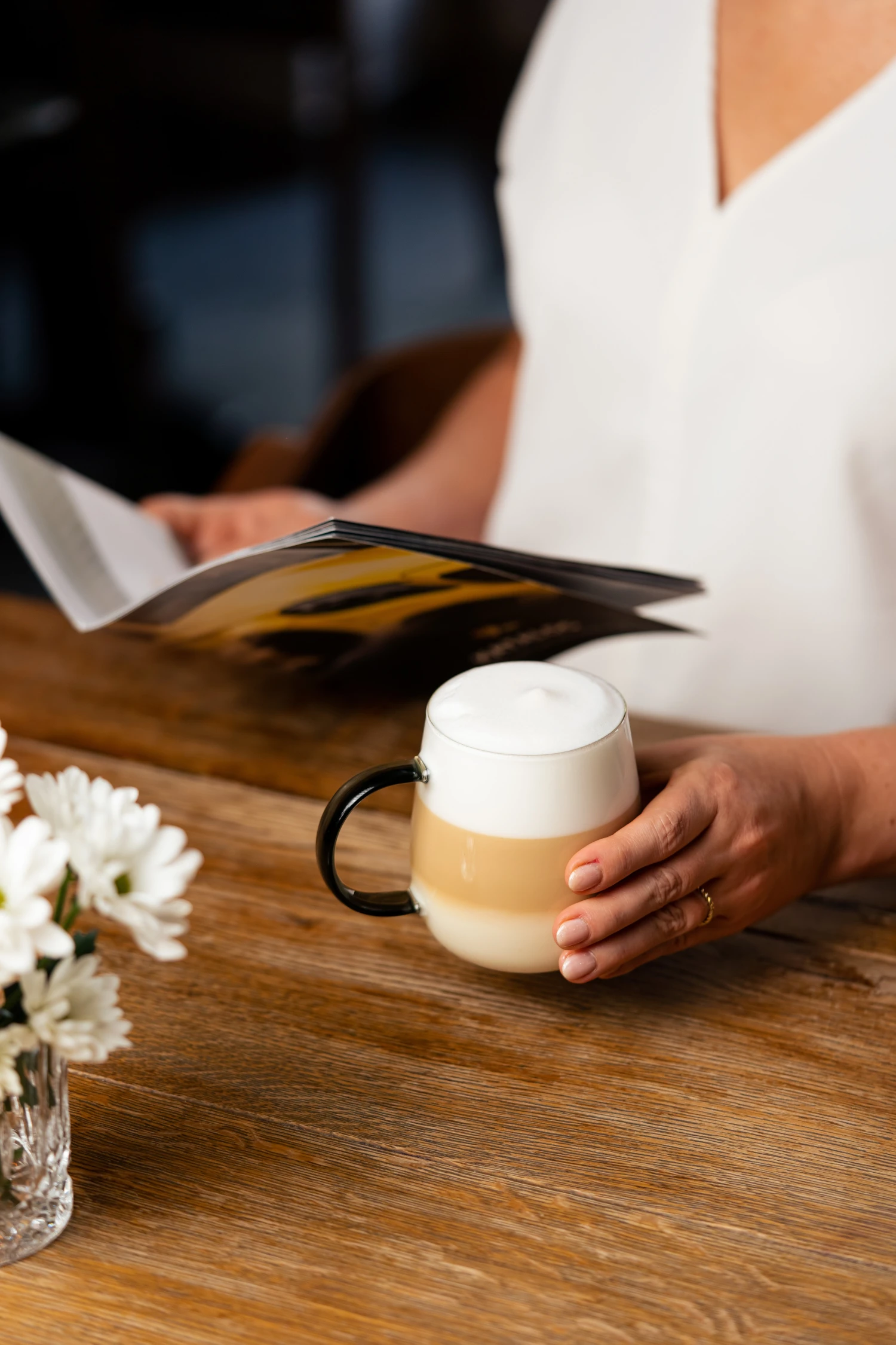 Szklanki Bolla zachwycają swoim kulistym kształtem, który przypomina delikatną bańkę, wprowadzając do wnętrza minimalistyczny i elegancki charakter. Ich gładkie linie i prostota formy sprawiają, że doskonale eksponują barwy serwowanych napojów, dodając wyjątkowego uroku zarówno kawie, jak i herbacie. Wykonane z wytrzymałego szkła borokrzemowego, szklanki są odporne na wysokie temperatury, a możliwość mycia w zmywarce czyni je praktycznym wyborem na co dzień.